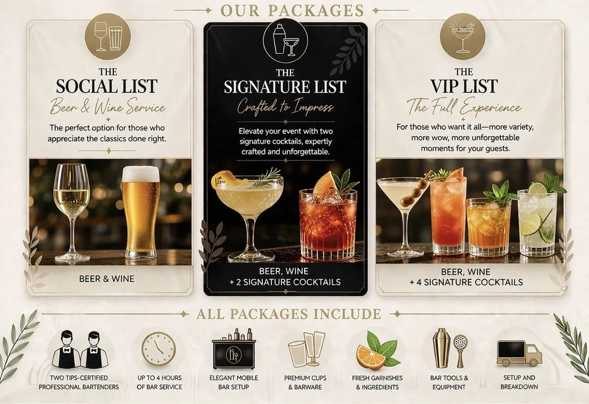 After spending years behind the bar serving guests and creating memorable experiences, they decided to bring that same level of service and craft to private events.